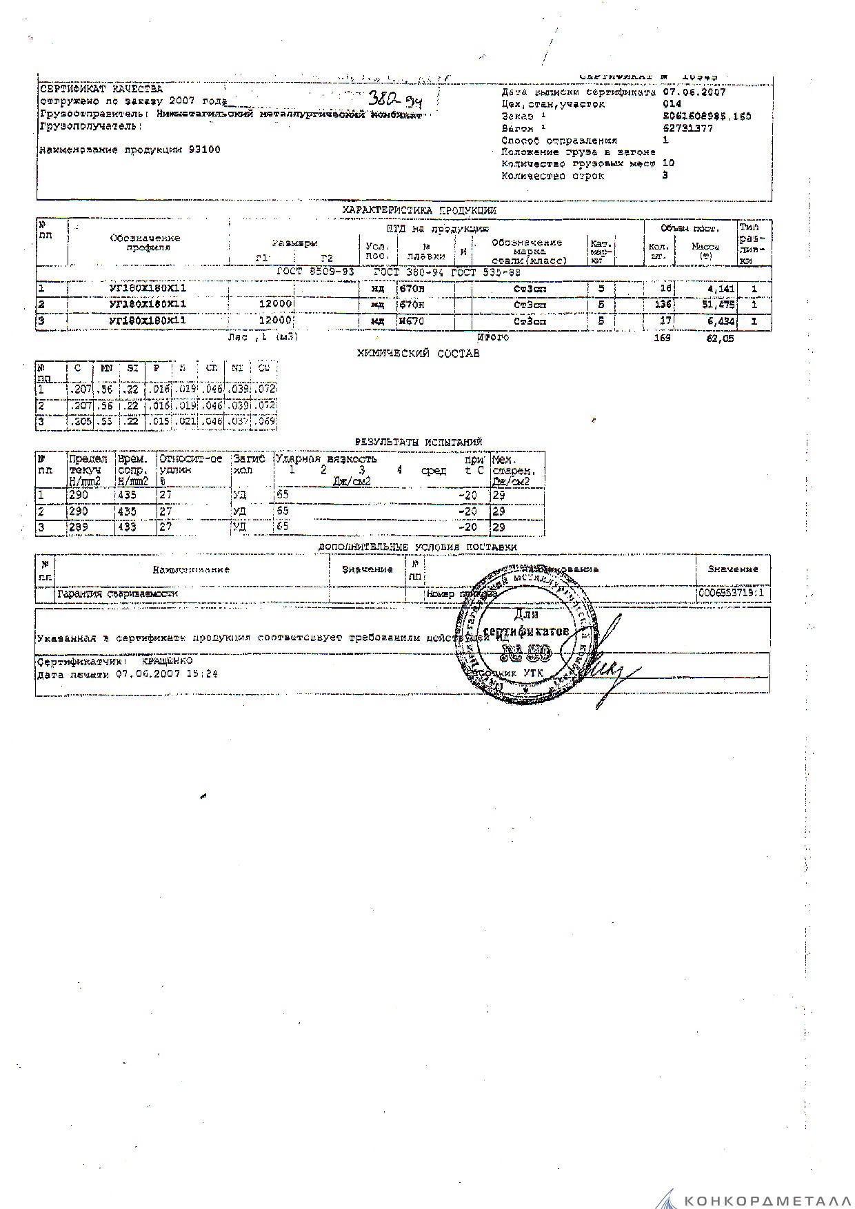 С каждой товарной позицией мы предоставляем все сертификаты и паспорта качества, а также товарно-транспортную накладную.